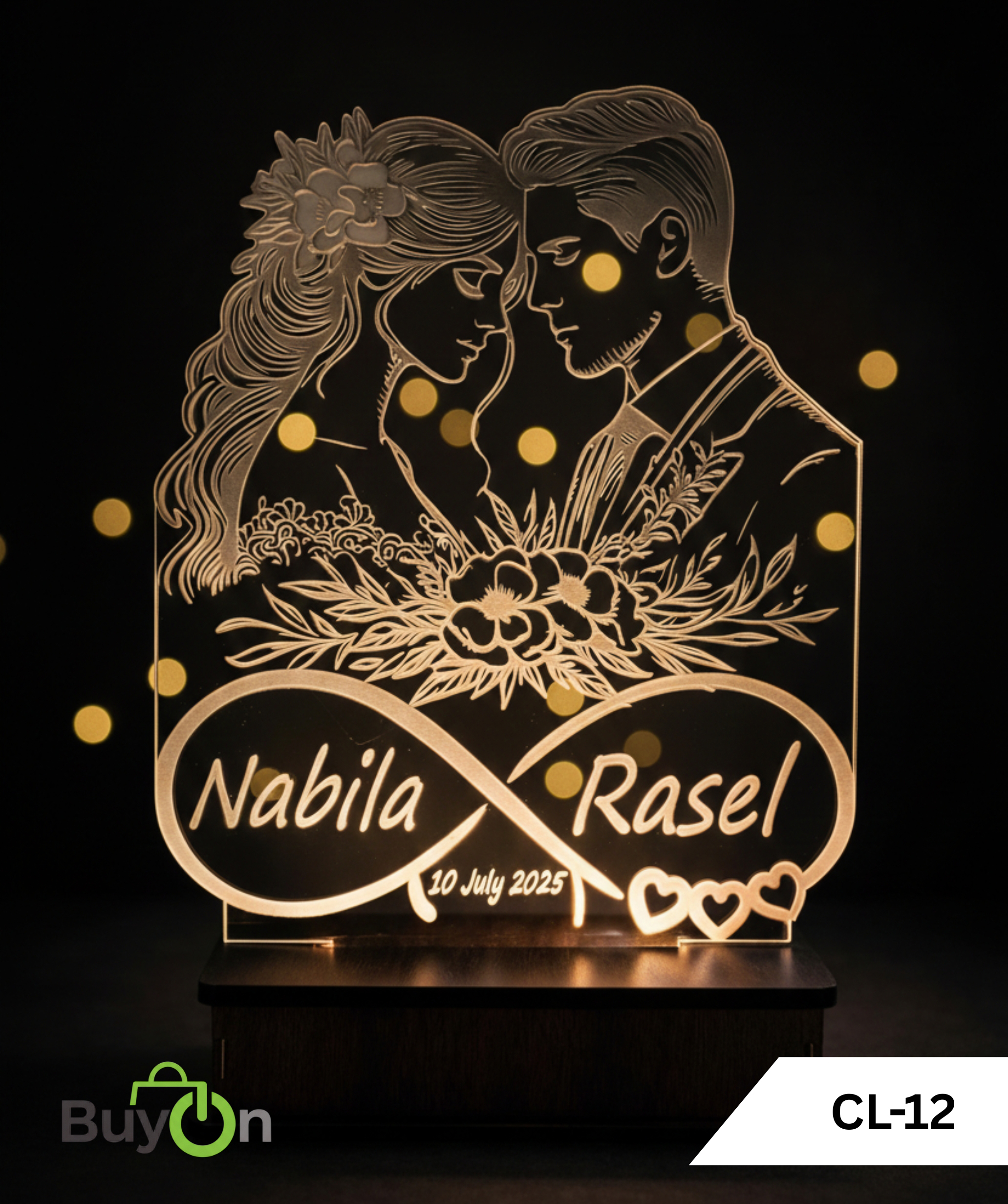Turn your love into light with our Customized Couple LED Lamp, specially crafted to make your special moments unforgettable. Each lamp is designed with a premium acrylic sheet and personalized with your chosen names, creating a meaningful and elegant gift for couples.