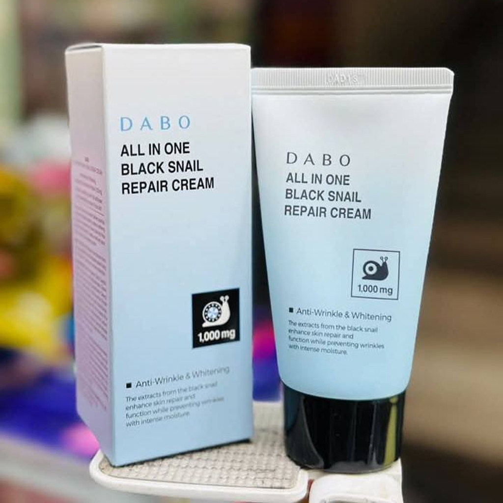DABO All In One Black Snail Repair Cream is a powerful Korean skincare solution specially formulated for damaged, thin, sensitive, and aging skin. Enriched with 1000mg of Black Snail Extract, this advanced repair cream helps restore weakened skin, improve elasticity, and promote a healthier, more youthful appearance.