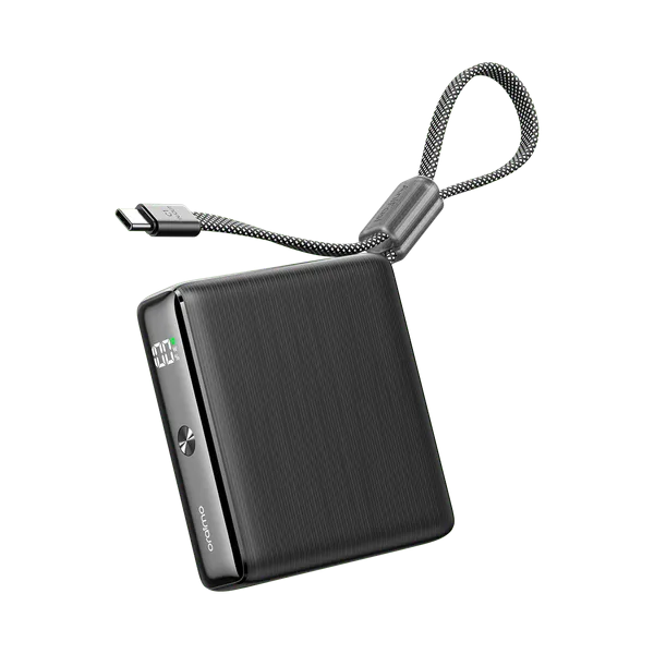 🔌 Multiple Charging Ports – Built-in Type-C cable + Type-C + USB-A output